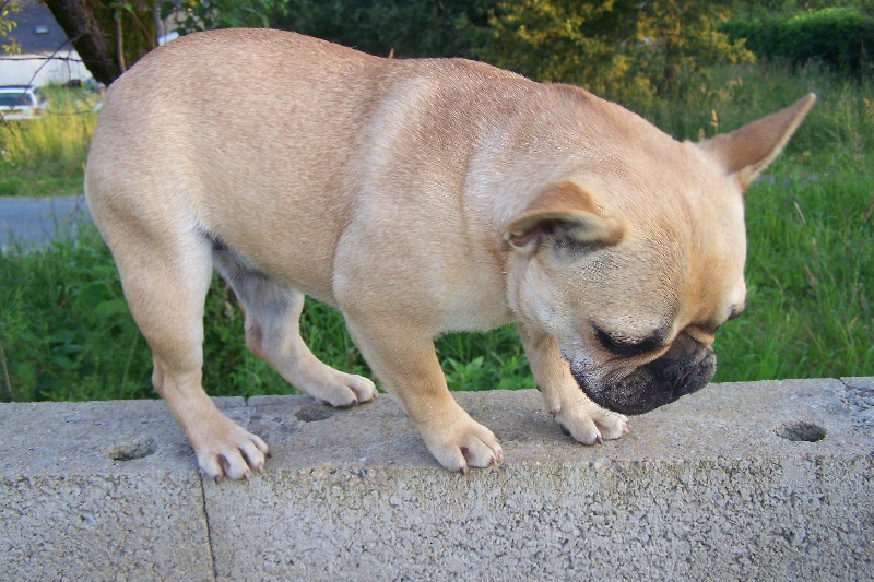 10 kgs exc type et gabarit bien pro. coude bien au corps bonne ossature exc aplomb avant. exc poitrine angulation arriere correct. queue 1 doigt. exc couleur fauve tete bien carrée exc profil bonne bouche exc demarche