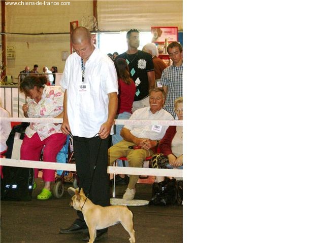 bon type. belle tete. b orreilles. b creme. b chanfrein.b prog. b expression. b oss. b encolure. ligne de dos un peu droite. b coffre. assez d'ang et de queue b couleur. b poil. b mouvement