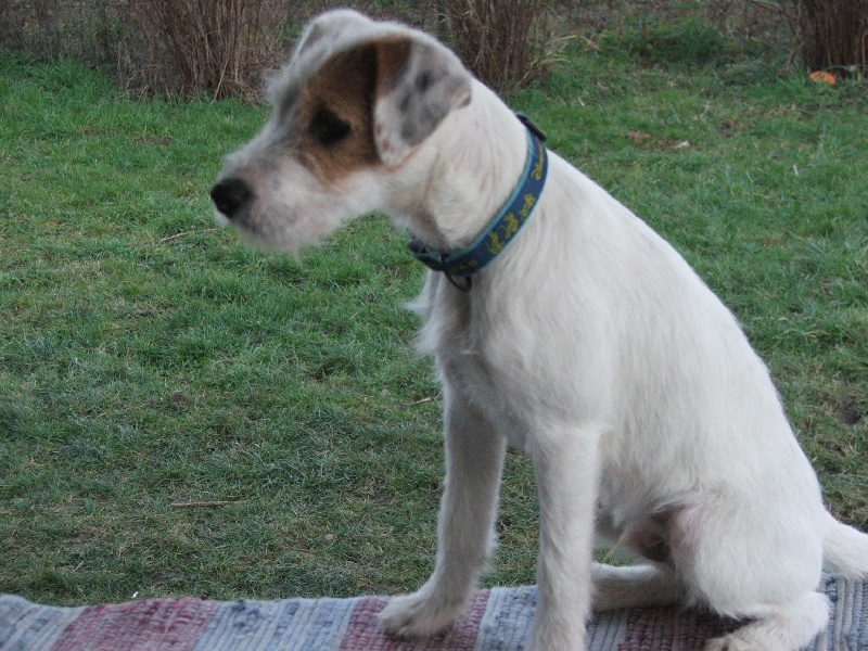 Poil dur déjà grand pour son âge doit maitenant se développé et prendre un peu de substance, excellent TCC les oreilles un peu lourde et tombantes,excellent structure, bonne arrière main. Sujet qui a grandi trop vite et qui n'est aujourd'hui dans un état parfait.