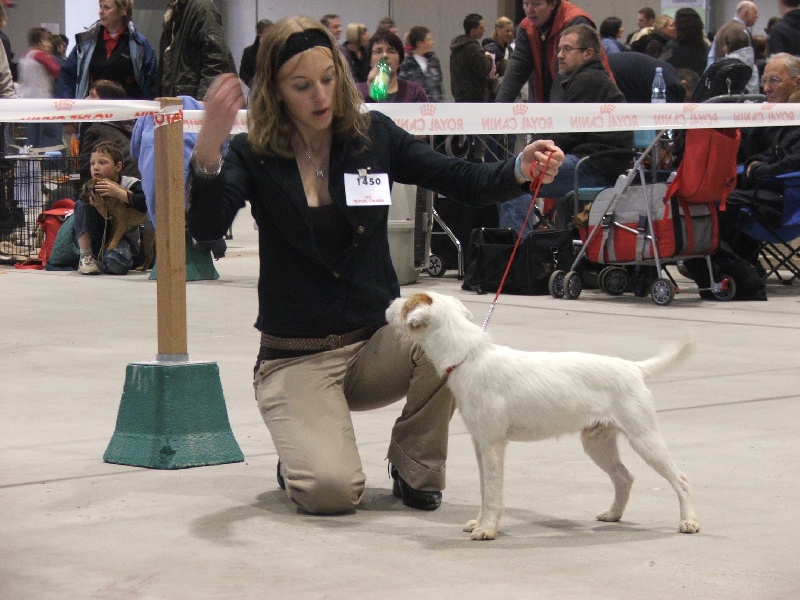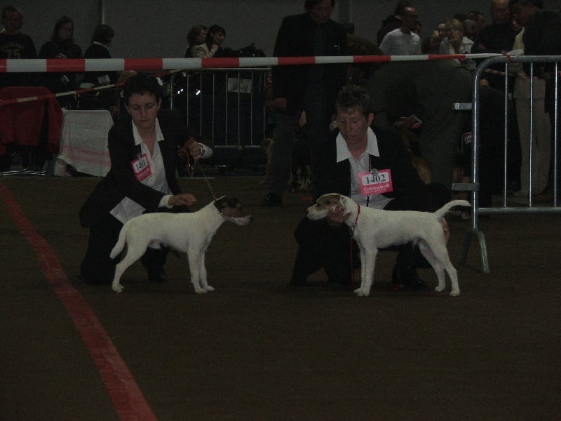 Bonne tête, excellent pigmentation des yeux, DCC, 37/45.Bonne encolure, épaules et pieds, excellente ligne de dessus et fouet.Bonne cuisse et arrière-main, bon mouvement.