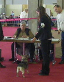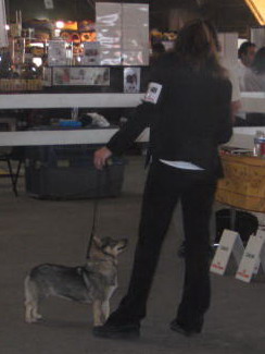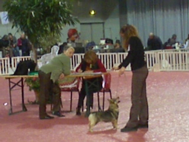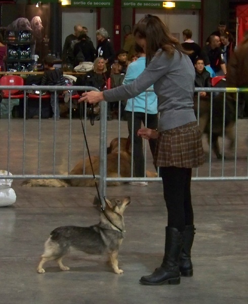 Se déplace bien. Exc mouvement. Exc construction, trés jolie expression femelle. le crane est bien plat, bonne attache des oreilles, pointues. oeil d'excellente forme et couleur. DCC bien rangée. l'encolure est correcte. exc épaule avec une bonne musculature. ossature solide. poitrine pourrait être un peu + éclatée. ligne de dos solide et tendu. exc musculature. angulation bien marquée.Exc sous-poil et couleur.