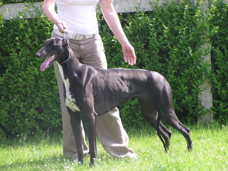 2 ans B.strusture générale. Tête très éléante et féminine. TB poitrine et angulations. Exc conditions et présentetion. B mouvement, pourrait allonger lég davantage