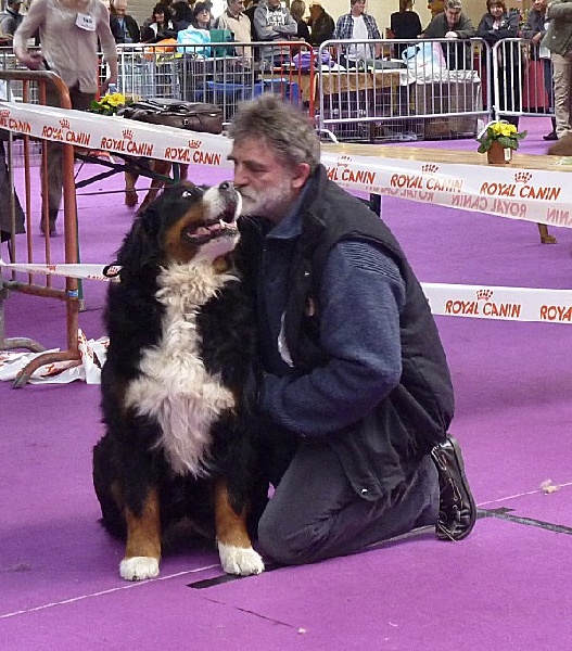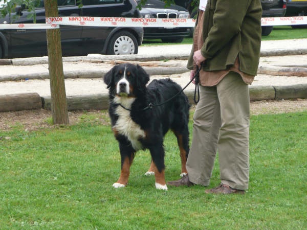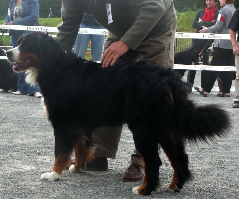 Excellente taille et dos, Tête féminine avec beaucoup d'expression bernoise.Excellent oeil de bonne couleur et formr, Tres bon format avec une bonne ossature de profil, bon devant avec excellents aplombs; Angulation arrière bien marquée, Bonne texture de poilsUn dynamique qu'il faudra canaliser