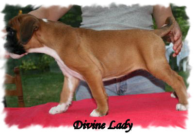 Elégante, féminineConstruction d'ensemble harmonieuseBonne ossature. Poitrine bien descendueDéjà un bon poitrailUn bon dosBonne ang. AV/ARBelle encolureTrès jolie tête avec d'excellentes proportions crane/museauStop et menton marquésGrand yeux foncésMuseau pleinTrès belle dentitionAllures libres avec un très bon dos et un très bon port de queue