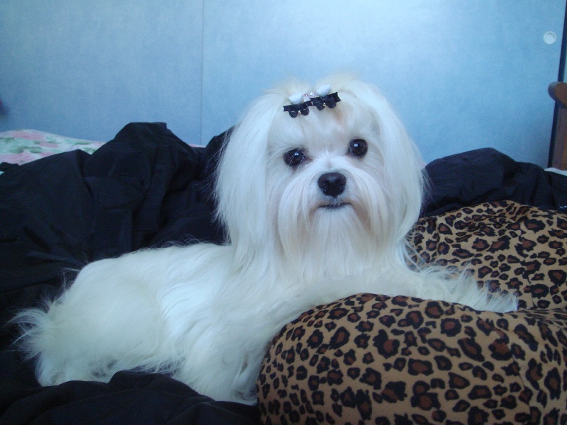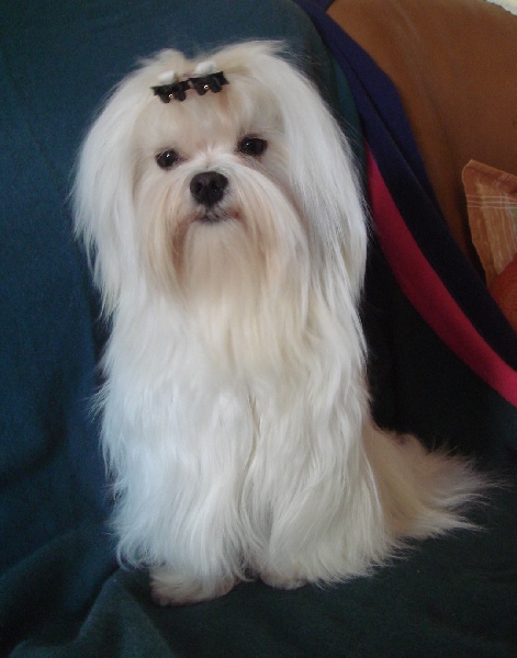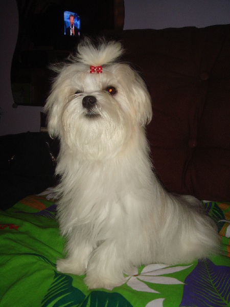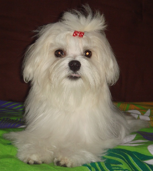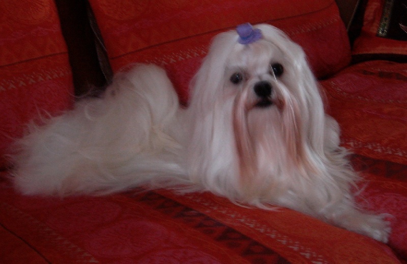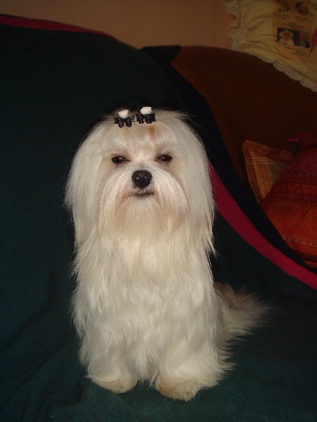 Macho est un chien de 22 cm au garrot pour 3Kg 150 , il a une excellente fourrure blanche et très plate de bonne texture. il a une excellente pigmentation générale. Son caractère joueur et très équilibré.