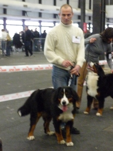 60 cm ; DCC ; Yeux foncésBon marquageTête dans le type, manque encore de largeur de poitrineBon applomb avantAngulation un peu justeMouvement correctConclusion : on aurait du l'inscrire en classe "jeune femelle", car elle n'a pas fini sa croissance.