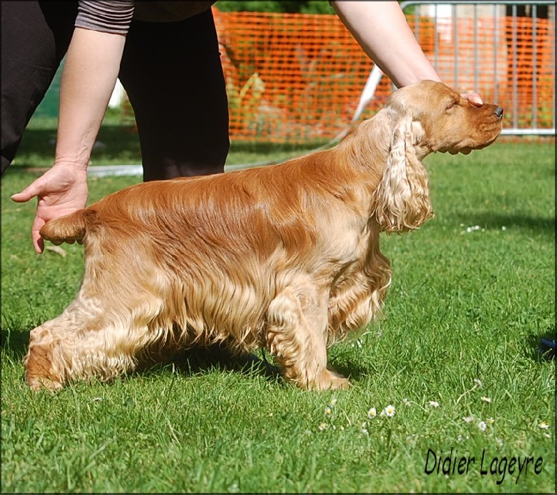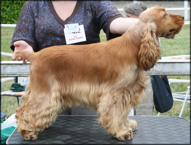 Bonne tête .Belle expression.Excellente encolure.Excellentes épaules. Bonne poitrine. Excellente ossature.Bon dessus. Excellentes angulations arrières.Belle qualité de poils.Marche bien . Meilleur Jeune.