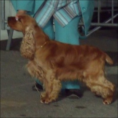 Correct size and type .Excellent head and expression.Very well angulated legs.Nice top line.Good proportions but needs more substance in body.Nice coat.Pleasing temp and sound movement , gay tail in movement .