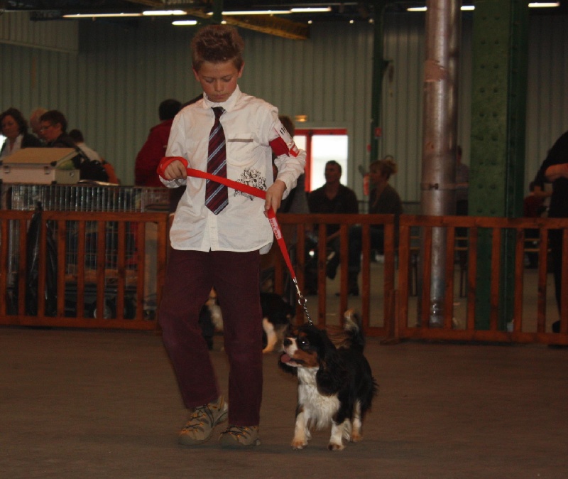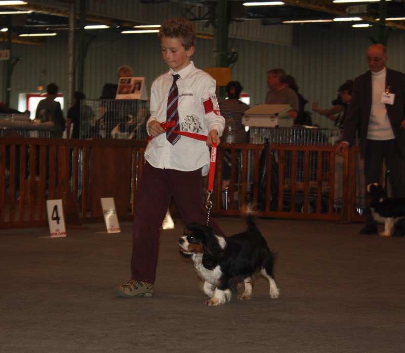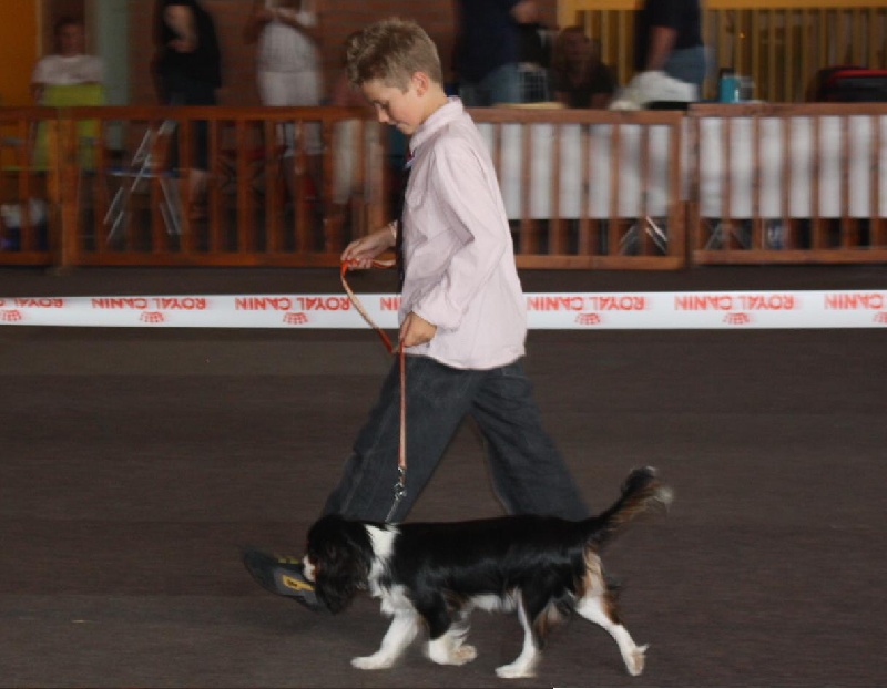 Classe puppy : 7 mois (1ère exposition). Aujourd'hui petit modèle un peu de liste minuscule mais visible. Exc dent.Petit modèle à ossature légère.Chienne bien présentée.