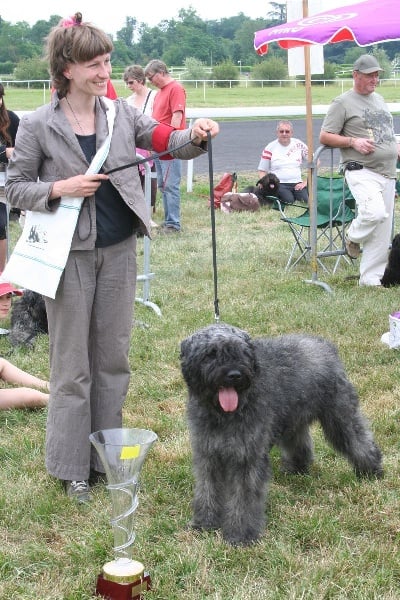 2ème EXCELLENT, CLASSE OUVERTE MÂLE, complet Dentition Complète et correcte, Exc Tête crâne oeil, Exc poitrine, Exc dessus dessous, Exc applomb AV et AR, Exc prototype bouvier, Exc sujet, Exc allure bouvière