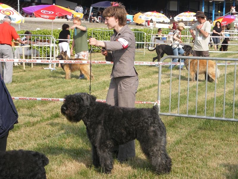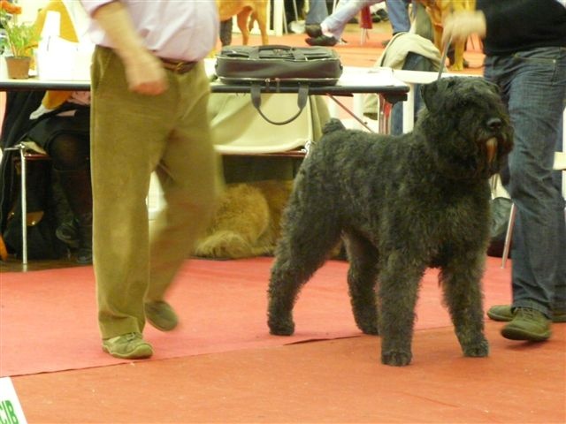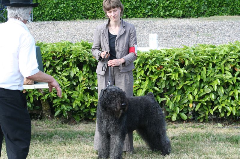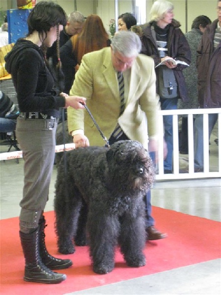 1er Excellent classe travail mâle, CACS-CACIB, Meilleur de Race, 2ème du groupe 1, Dentition correcte et complète, Exc tête crâne oeil, Exc dessus dessous, Exc encolure, Exc poitrine, Exc applomb AV et AR, Exc musculature et ossature, Exc sujet, Exc prototype bouvier des flandres, Exc allures bouvières, se présente bien, complet