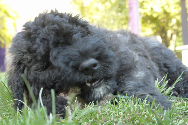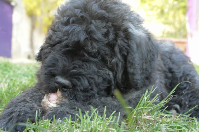 1er Excellent classe travail mâle, CACS-CACIB, Meilleur de Race. 3 ans et demi. Dans la fourchette de taille grand modèle, masculin, bien typé. DCC. crane plat, large, Exc paralelisme. Tête proportionnes au corps. Belle ligne du dessus bien suivie. Exc ossature, angulation arrière, pieds et aplombs. Avant un peut ouverte. Poitrine légère. Poil sec un peut bouclé. Belle couleur de robe. Beau paralélisme Allée/Retour. Mouvement facile régulier. Bonne amplitude. Exc caractère.Meilleur de Race
