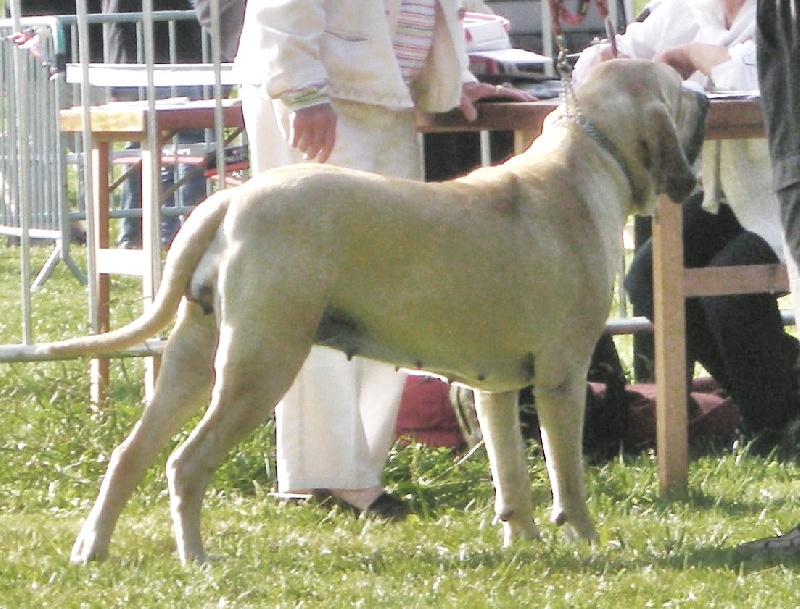 2 ANS - CHIENNE PUISSANTE - BONNE LIGNE DE TÊTE- EXCELLENTS FANONS -EXCELLENT PORT D'OREILLES -BONNE LIGNE DE DOS - LA CROUPE POURRAIT ÊTRE PLUS HAUTE - EXCELLENTE ANGULATION - BONNE LIGNE DE DESSOUS - EXCELLENTE OSSATURE - ALLURES CORRECTES -
