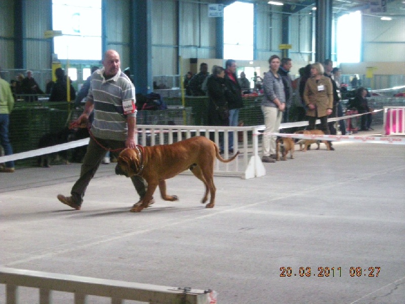 GRAND CHIEN - BRÛTE DE L'HYPER TYPE - JOLIE TÊTE DE MÂLE EN HARMONIE AVEC LE CORPS - CHIEN BIEN CONSTRUIT - PROFIL HARMONIEUX - EXCELLENT DEVANT - FORTE OSSATURE - TRES BONS APLOMBS - SE DEPLACE FACILEMENT . *EXCELLENT - 1 ER - CACS de SCC - CACIB de la FCI - MEILLEUR DE RACE .