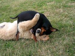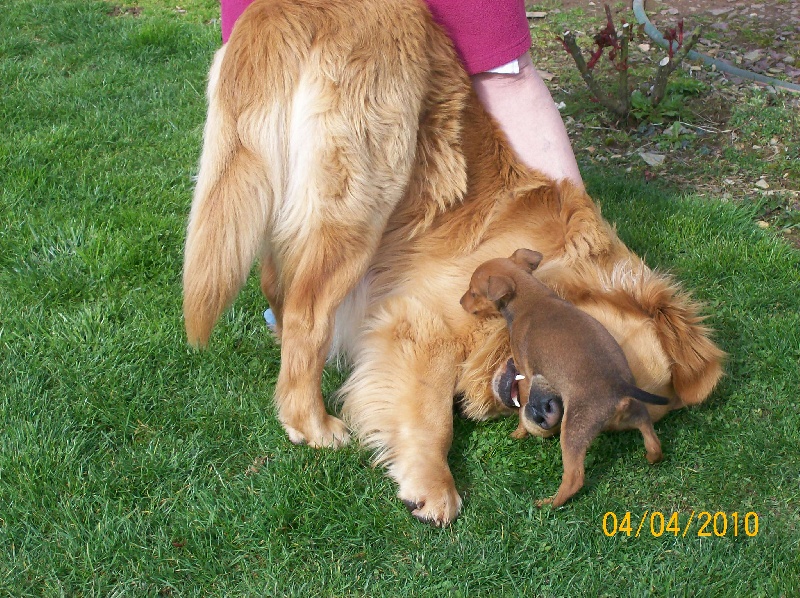 Duchesse est avec nous depuis la mi avril 2008 elle c'est bien intégrée dans notre petit groupe Nupsy la cocker -Viton et Biscotte elle est encore très joueuse et affectueuse , une très jolie robe avec des feux trés soutenus ce qui permet d'envisager une bonne carrière en exposition et esperons avoir des bébés aussi beaux que ceux de Biscotte.