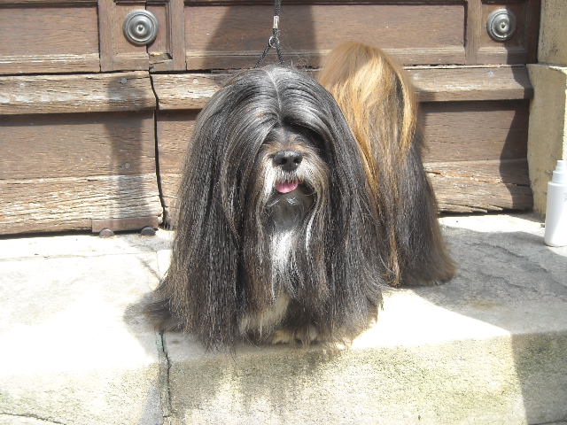 Fils d'U'Chang, il a accumulé CACS, CACIB, BOB en France et à l'étranger. Son seul problème: il marche quand il le veut bien. C'est un vrai lhassa, il fait ce qu'il veut.