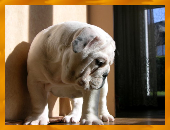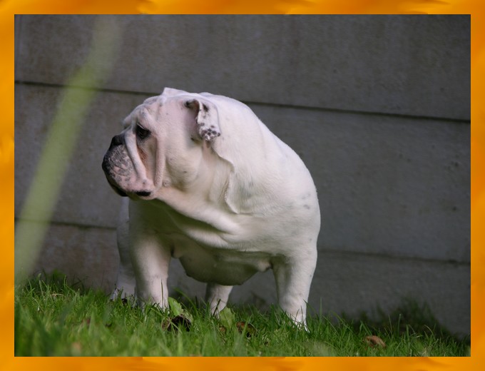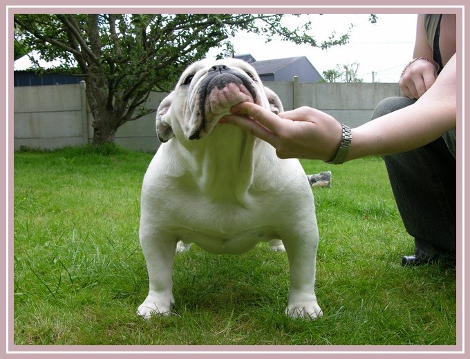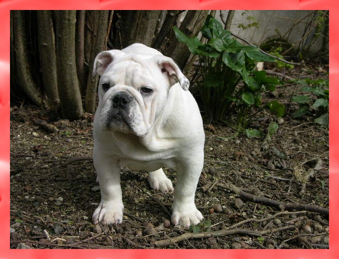 "Corn Mill Big Plume", que l'on a rebaptisé "Corail". c'est une petite princesse qui est entrée à la maison le 3 février 2008, elle est magnifique bien typée et une carrure à faire pâlir un déménageur Breton !!! très intelligente, rusée elle sait s'imposer au sein de sa nouvelle famille elle mène ses deux compères et amis Bilbo et Apollon ( à découvrir sur le site) de main de fer. D'une gentillesse à la hauteur de son élégance, Corail est un amour de bullette.