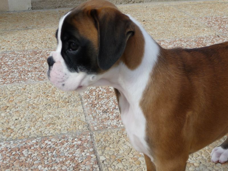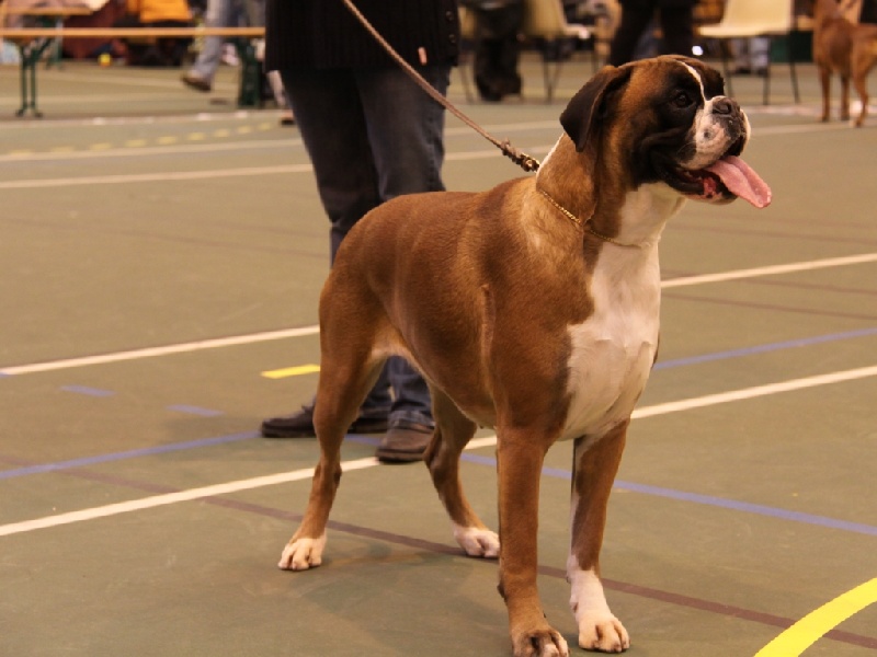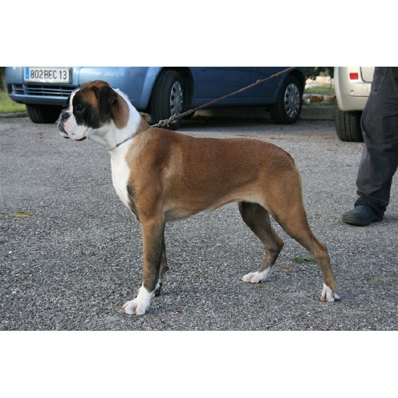 12 mois, fauve dorée, légèrement charbonné et marqué en blanc, Bonne taille, tête typée, stop/menton bien marqué, dentition large avec fort prognatisme, yeux sombres, bon volume museau, presque carré, Bonne ossature, bonne susbtance, bonne sortie encolure. Poitrine aux coudes, bonne angulation avant,poitrail bien développée, angulation avant arrière un peu longueExcellente poussée aux alluresBon dos