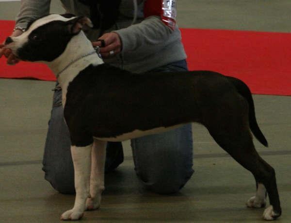 Harmonieuse avec bonne ossaturetête en rapport du crane, rapports crane chan frein par encore parfait mais le silon frontal pas encore bien marqué, on pourrait souhaiter des oreilles un peu plus plaquéstrés bon articulé, dos bien court avec bon vol poitrine et bon angrepartion des coul trés plaisanteµtrés a l'aise dans ses allures