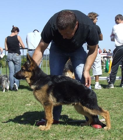 Pour des raisons de santé,je ne peux plus m'occuper de la carrière de DAN . En expo,il est sorti 3 fois,2 fois 1er en 4/6 mois aux Echets en 6/9 à Pernes les fontaines . 3éme à Uzès en débutant . Les pré-radios sont bonnes ( hanches et coudes ) Il est débourré au mordant . C'est un chien sympa. qui demande bcp d'affection.Test ADN OK.