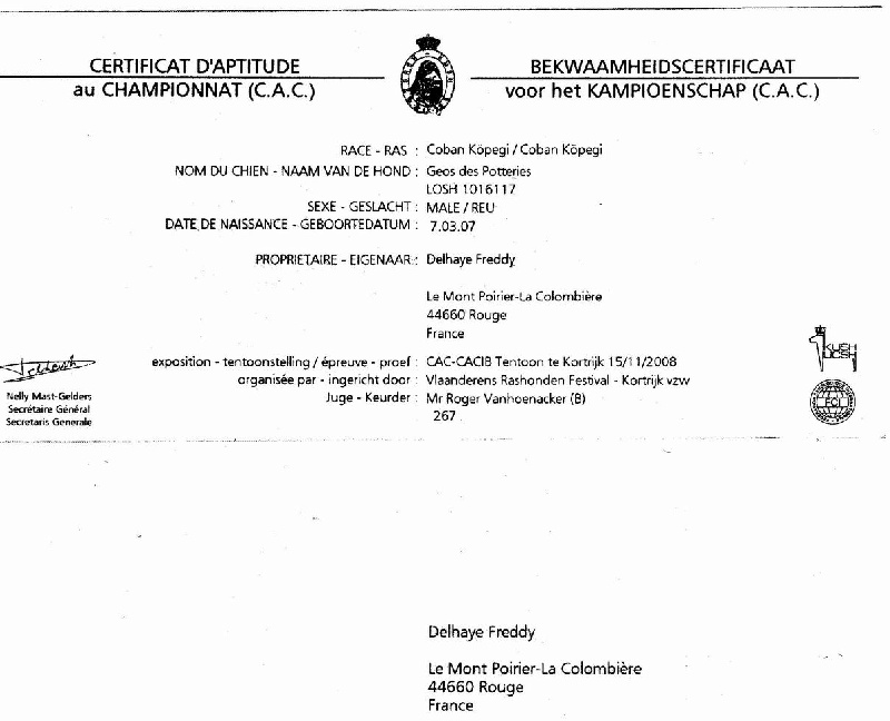 chien juge hors concours car soit disant " absent" alors que je n ai eu un retard que de 1 heureet qu on etait bien la sur placemais bon c est comme cale suppositioire empoisonne a deja fondu on passe a autre chose