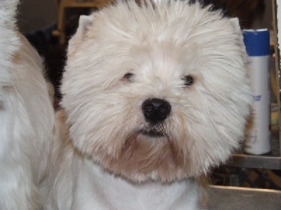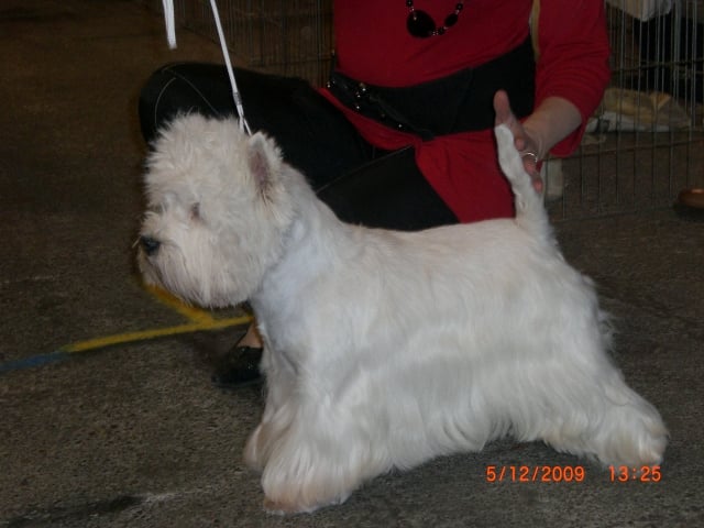 bonne occlusion. bon oeil. bonnes petites oreilles.très bonne encolure et ligne de dessus.très bonne angulation arrière.poil bien descendu.bonne texture de poil.très bon applomb avant et arrière.se déplace bien.