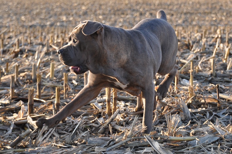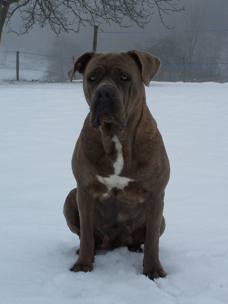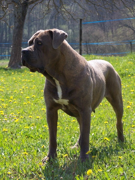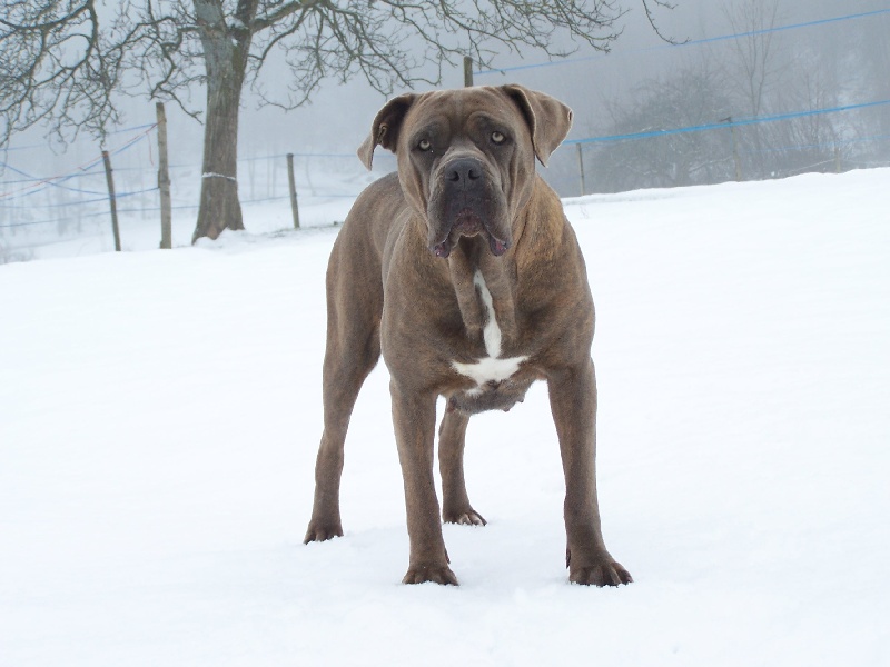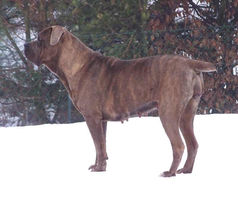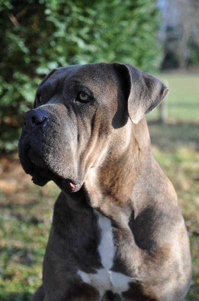 Excellent aspect général typique - Excellente tête typique du cane corso - oeil clair - excellent oreilles et front - Denture DCC - Excellent poids et taille - Excellente ligne de dos et poitrine - Excellentes aplombs et parallèles antérieurs et postérieurs - Excellent couleur et poil - Excellent mouvement - Excellent fouet - Ensemble excellent et bonne présentation.