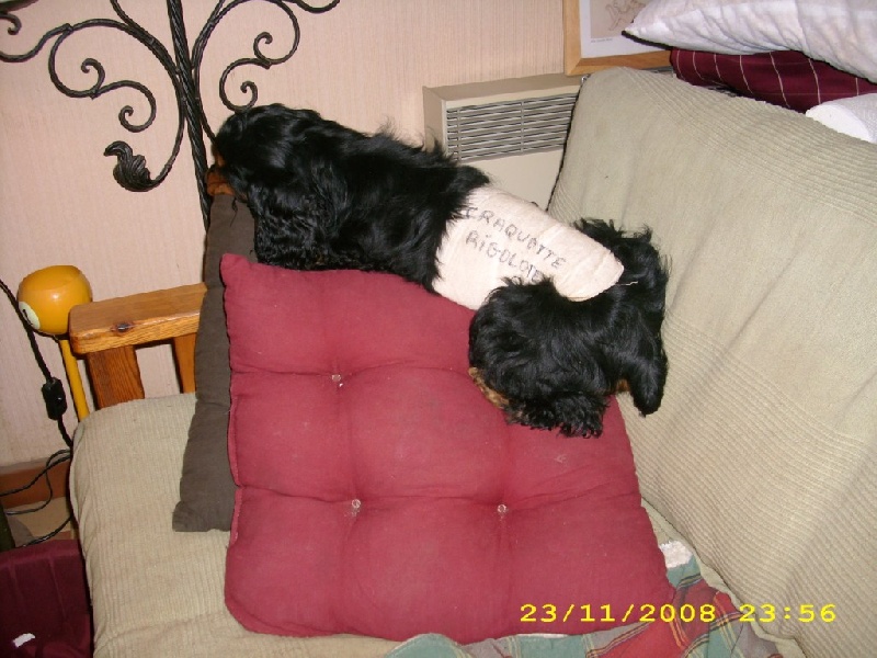 Dido a une petite malormation cérébrale (congénitale mais non héréditaire) qui lui provoque une légère déficience motrice du côté gauche. Elle ne partira pas dans le foyer qui l'avait réservée et restera donc dans la famille qui l'a vue naître, auprès de son frère, sa soeur et sa maman. Elle sera suivie à Maisons-Alfort car son cas est une première, jamais encore observé par les neurologues de l'ENVA. Elle est cependant pleine de vie, très joueuse et câline, et son handicap passe inaperçu pour qui n'est pas au courant. Espérons qu'elle ira toujours aussi bien, avec tout l'amour et l'aide, si nécessaire, que je pourrai lui donner.