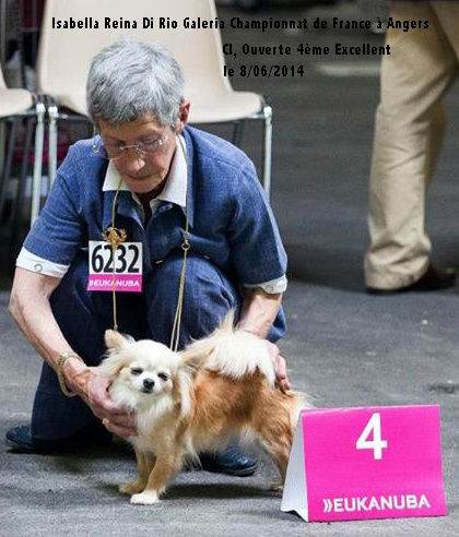 Sujet excellentes proportions - crâne en pomme - Excellent yeux - Bien féminine - Un peu plus de contact aux incisives - Museau bien rempli - Attache de queue correcte - Bonne angulation- Excellente longueur thorax et sternum bien marqué - Pieds typiques - Bonne ossature - Bon Manteau - Chien bien entretenu - Marche très bien