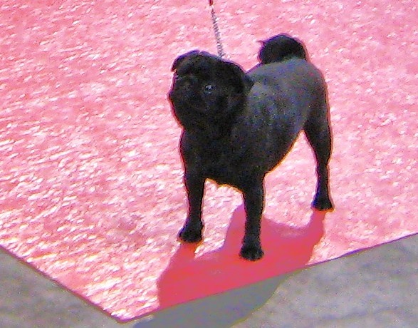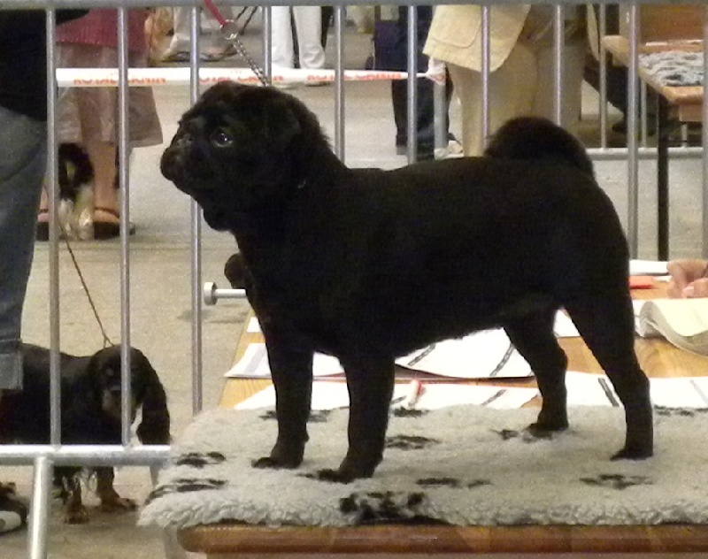 Très joli sujet - Excellentes oreilles - Excellents yeux - Excellente pigmentation - Très bonne denture - Excellentes avant-mains - Excellente poitrine et ligne de dos - Excellent postérieur - La queue bouclée et plaquée