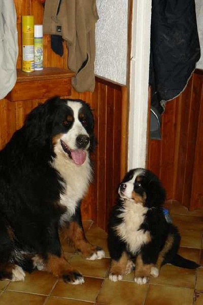 Aspect général: 4 mois, joli bébé. Poil/couleur: bonnes couleurs.Tête/denture: DC en plein changement. Jolie tête bien typée, avec bon oeil de bonne couleur. Corps: exc. ossature, exc. construction, très bonnes angulations. Poitrine déjà large. Membres antérieurs: aplombs avant et arrière corrects. Fouet/mouvement: bon dos, exc. A/R, exc.allures de profil. Commentaires: déjà bien habitué au ring, exc.caractère.