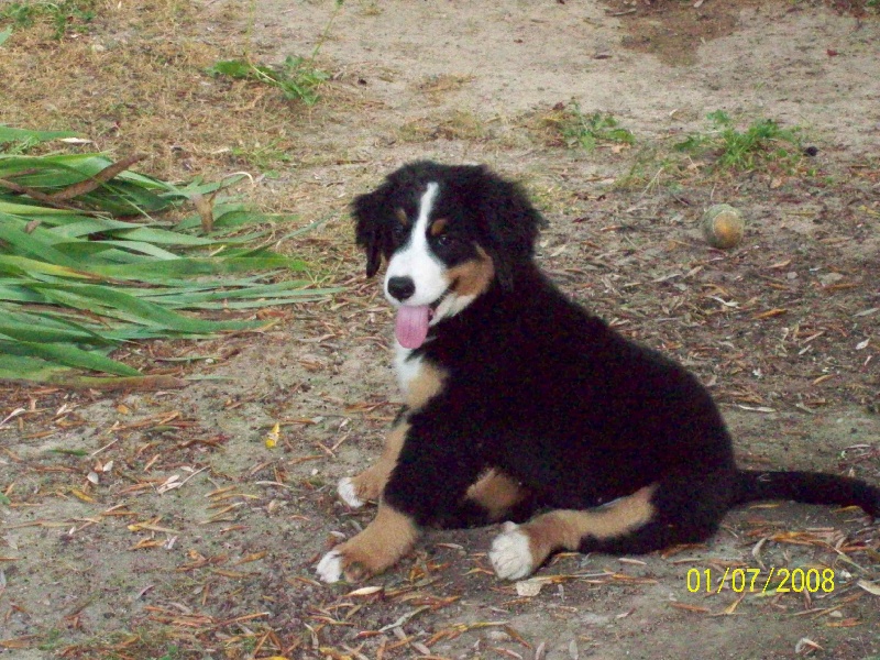 Très Bon Format.Tête Bien construite, oeil foncé.Corps Bien proportionné, ossature forte.Très bon aplombs, angulations et pieds .Très bonnes robe et marquages.Il faudra travailler la socialisation pour que le chien prenne de l'assurance.Se déplace correctement avec dos un peu voussé.