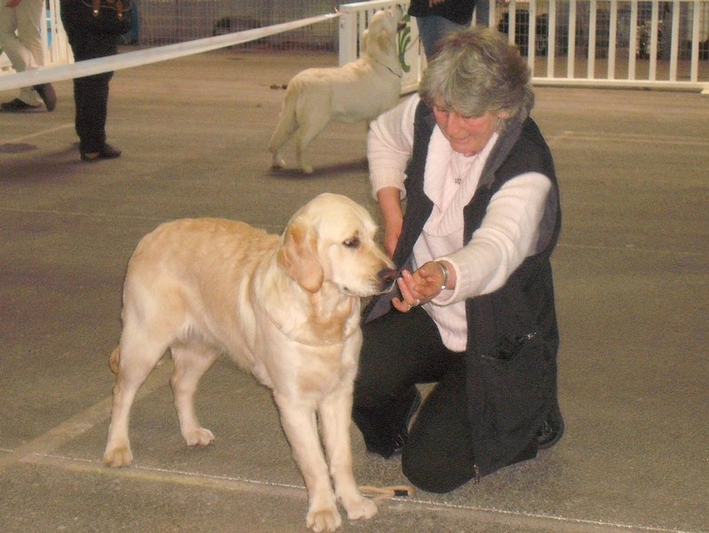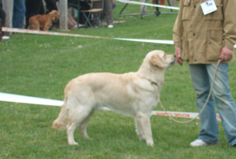 9 mois très prometteur bien construite pour son âge....un peu haute sur pattes !!.....en pleine croissance ..Ex tête avec une expression douce ....DCC encolure et les angualtions ainsi que la ligne de dos sont correctes .. Ex ..bonne présentation...
