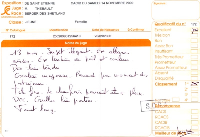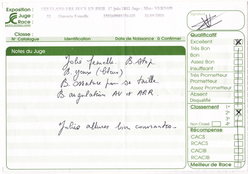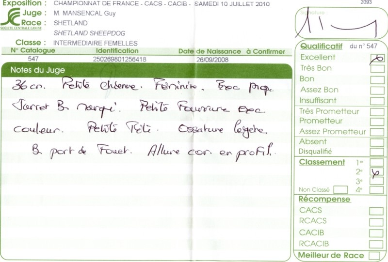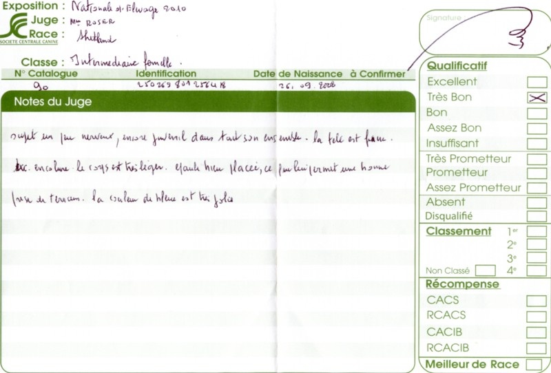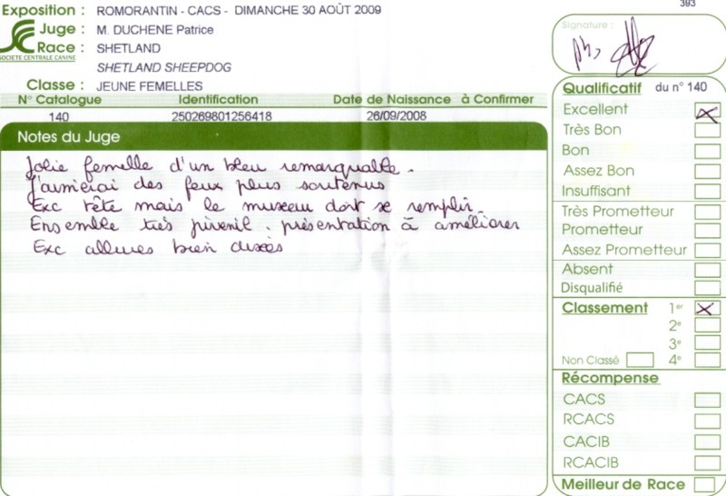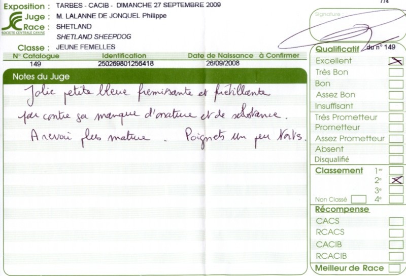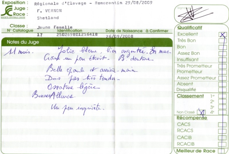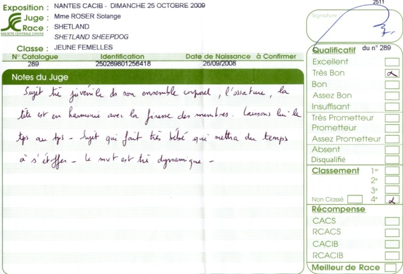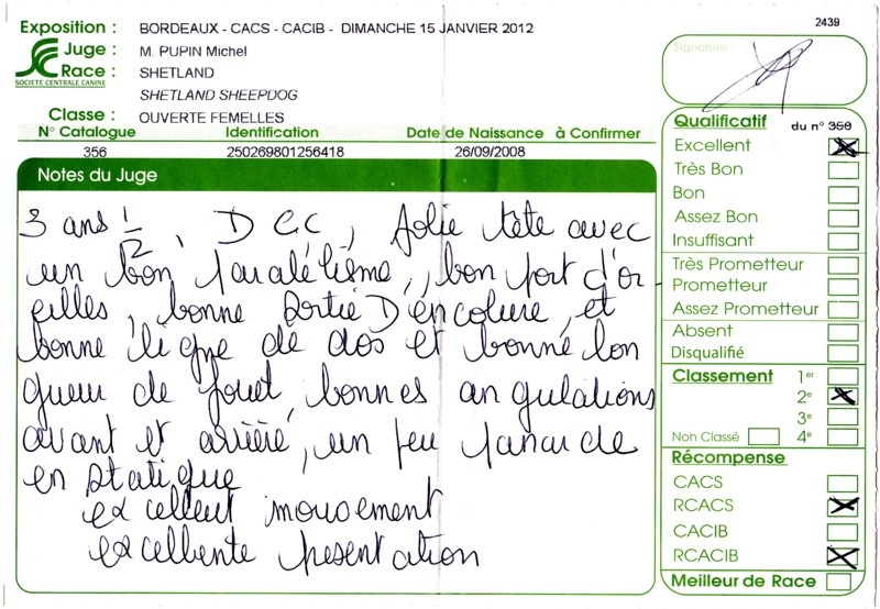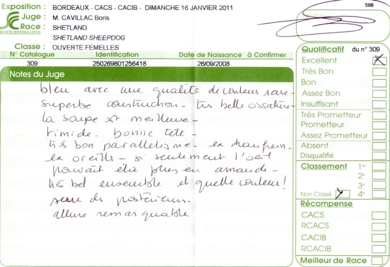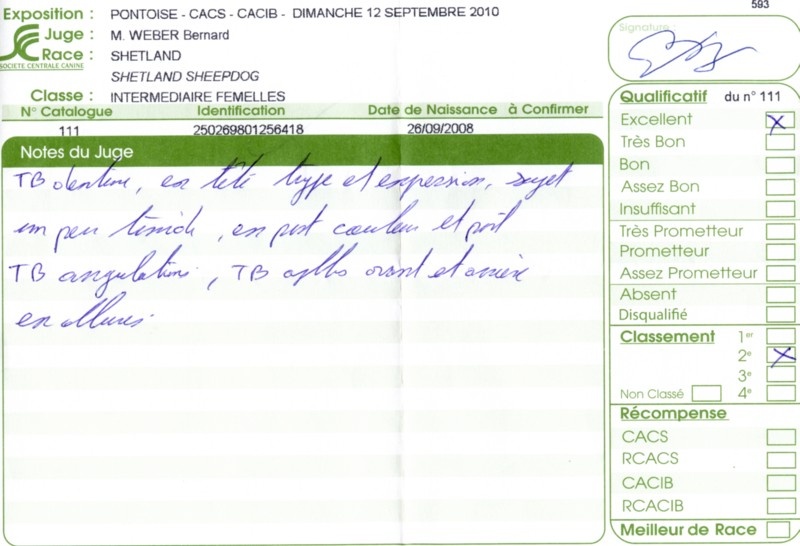 - 2ème excellent RCACS RCACIB classe ouverte