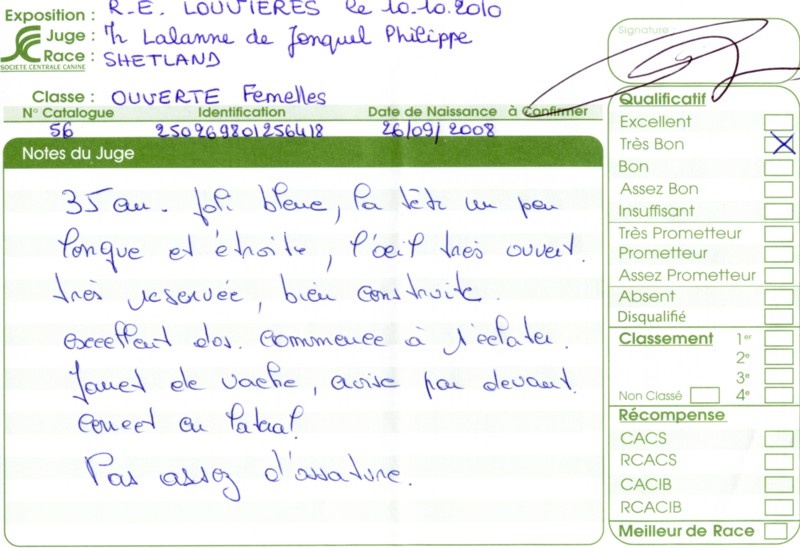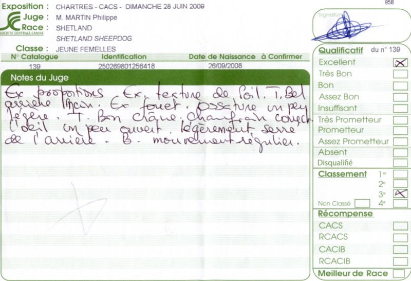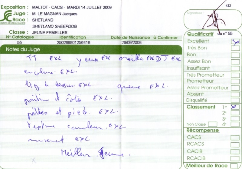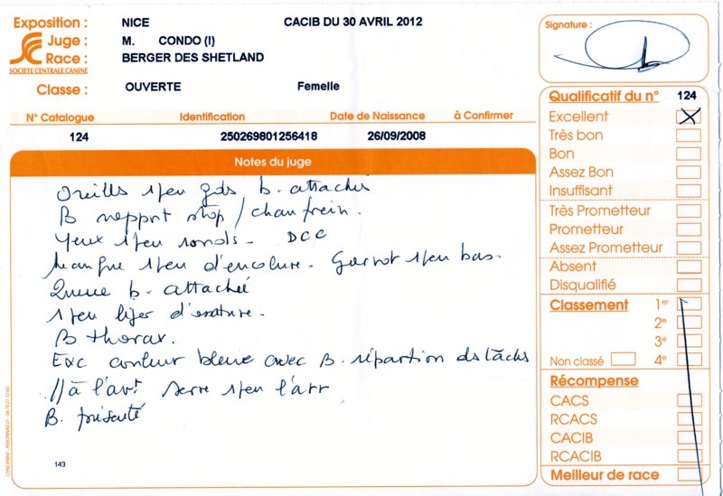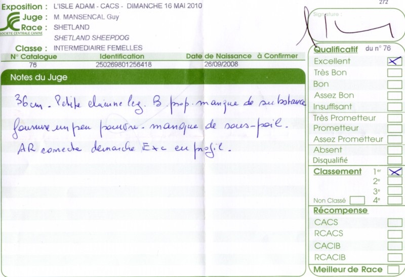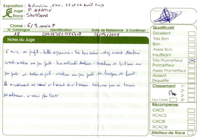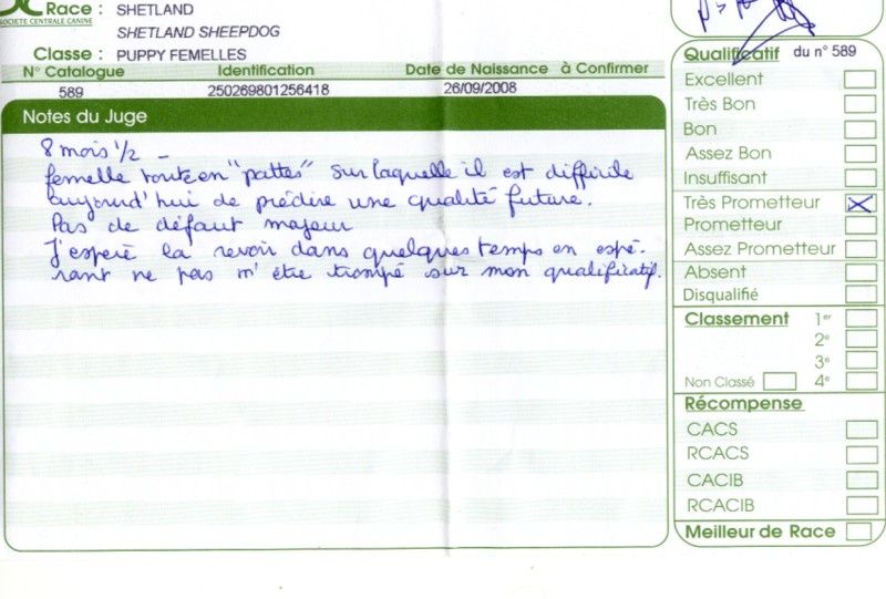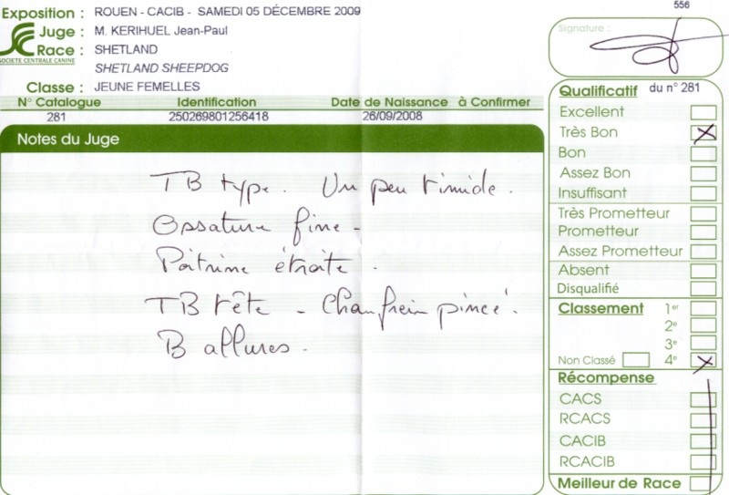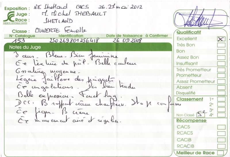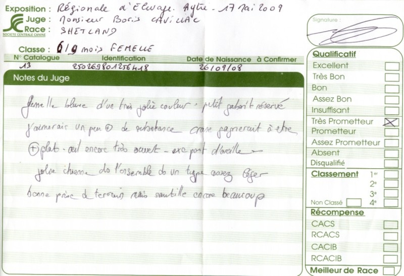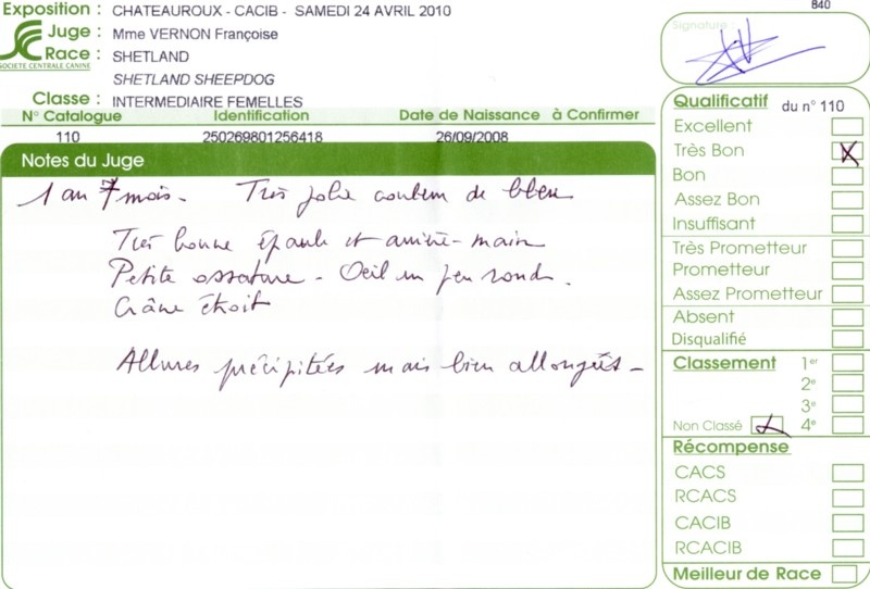 - 2ème excellent RCACS RCACIB classe ouverte
