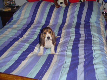 Je suis un chien de travail, mes maitres m´entrainent pour retrouver la trace des lapins et je participe à des épreuves de travail officielles où j´ai déjà eu des prix. Mais on ne tue jamais les lapins. C´est du travail et il n´y a jamais de fusil ou tout autre arme qui sont utilisés. J'ai pu obtenir des brevets très bons avec 125 points sur lapins.