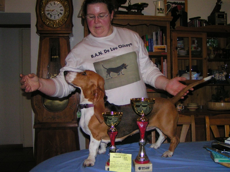 Joli modèle, bien construit. La tête est agréable. L'oreille est de bonne longueur. Très bons antérieurs, très bon arrière main. Sujets très équilibré. Excellents mouvements.