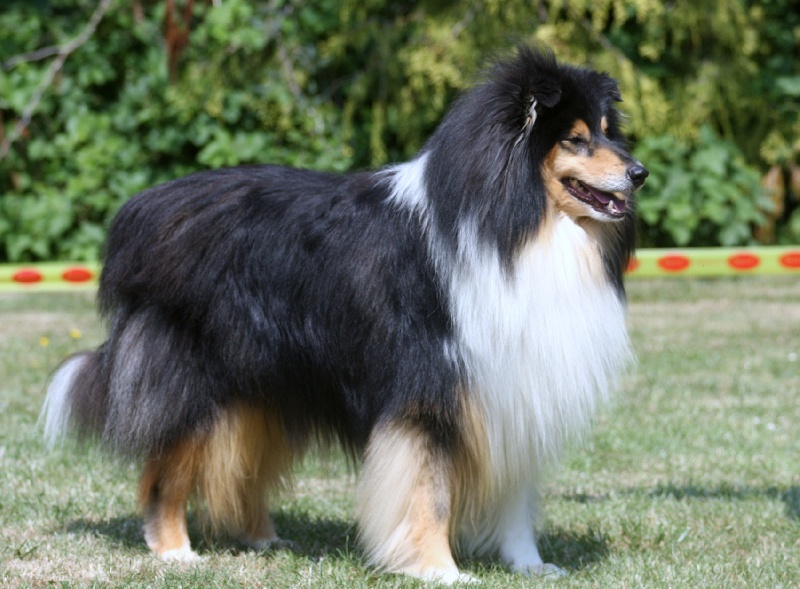 exc type se presente bien bien construit tres belle tete et expression exc corps dos aplombs et angulation, belle fourrure, bonnes allures