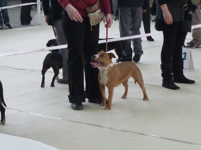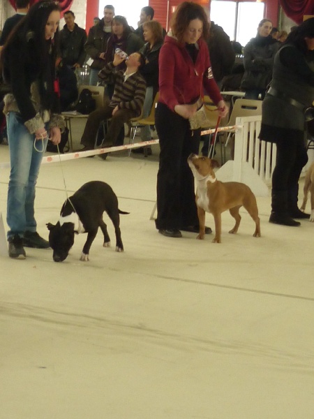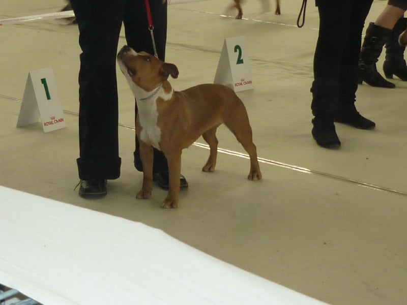 Ferait n'importe quoi pr se faire remarquer et être l'attraction principale lorsque nous avons de la visite ... bref un sacré numéro , une staffinette énergique et attachante , elle aussi très demandeuse en papouilles et extremement gourmande !!