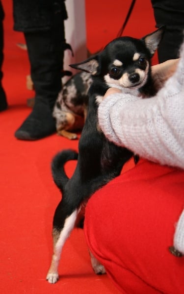 Exc. articulés. Incisives complètes.Petite fontanelle.Bonne tête. Les yeux grands, ronds et noirs.Oreilles importantes à 45°.Aplombs corrects excellents. Pieds ovales.Construction correcte. Poitrine excellente. Angulations corrects.Le fouet pourrait être mieux porté.