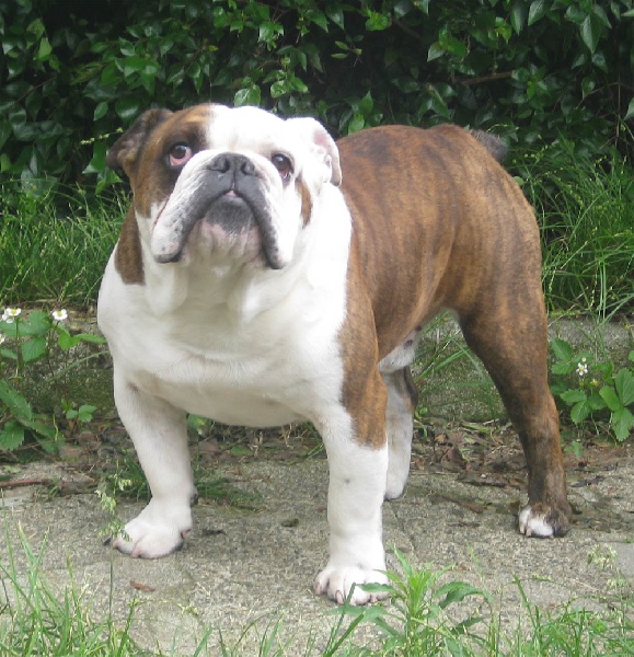 Doody est un très joli molosse compact à la couleure Bringé fauve, issu d'une lignée de champion aux affixes qui ont fait la renommée de la race Bulldog, CH. Medbull Gold dust over kelloe, CH. Wyecaple Good to go, CH. Marny De winooka ect......