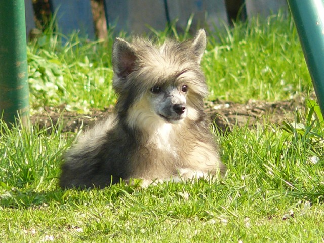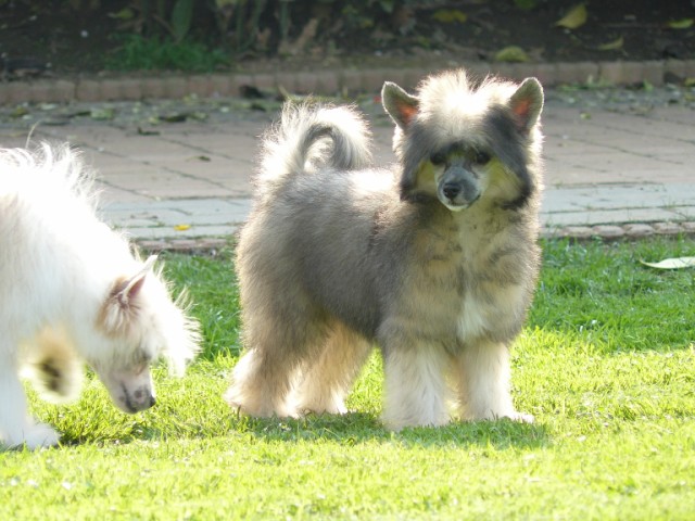 Sont poils est soyeux et facile d'entretiens, de couleur gris et abricot.