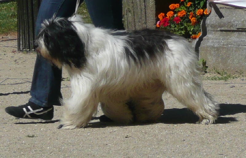 joli chien, de taille moyenne-la tête devra prendre un peu de volumeexcellente construction générale, mais les angulations sont un peu justesla texture du poil est un peu molleexc allures de profil avec bonne prise de terrainjeune chien qui pourrait s'améliorer avec le temps