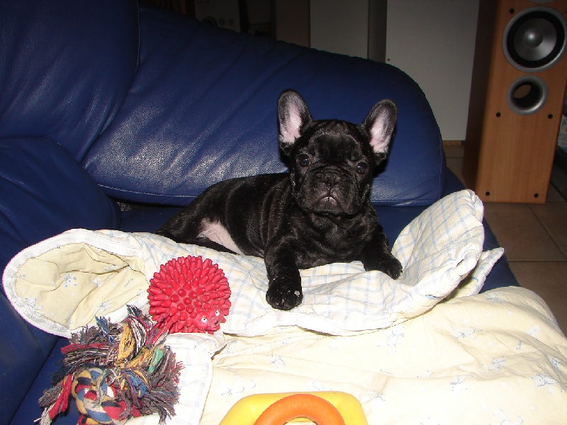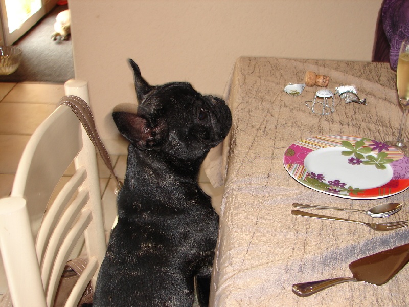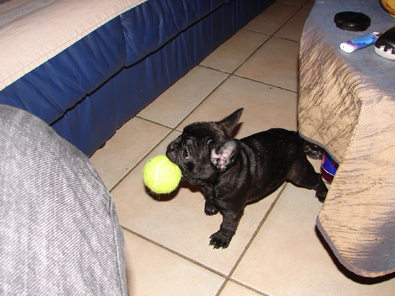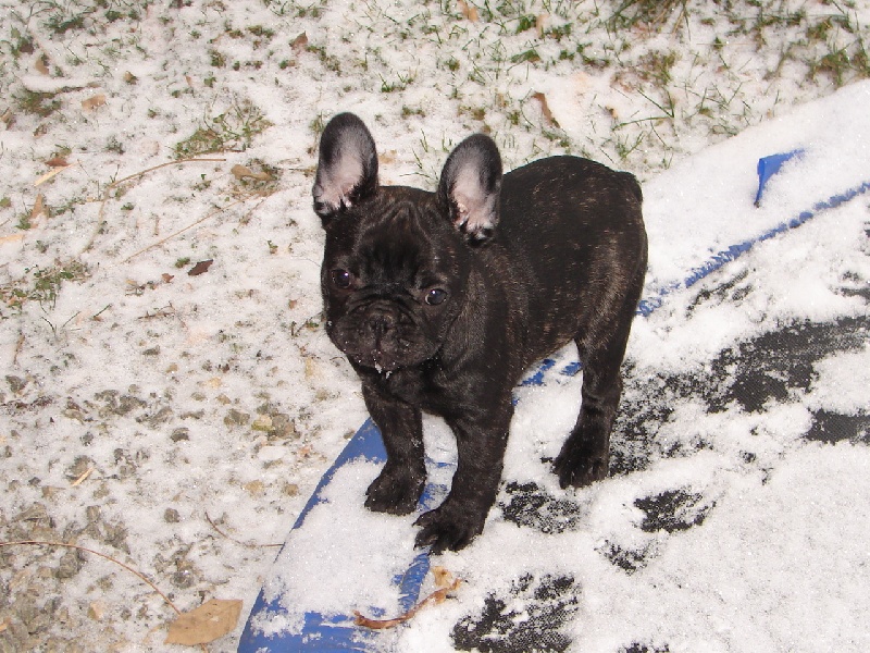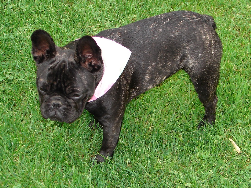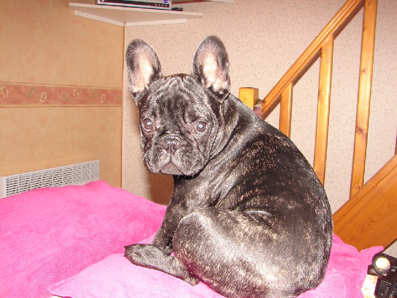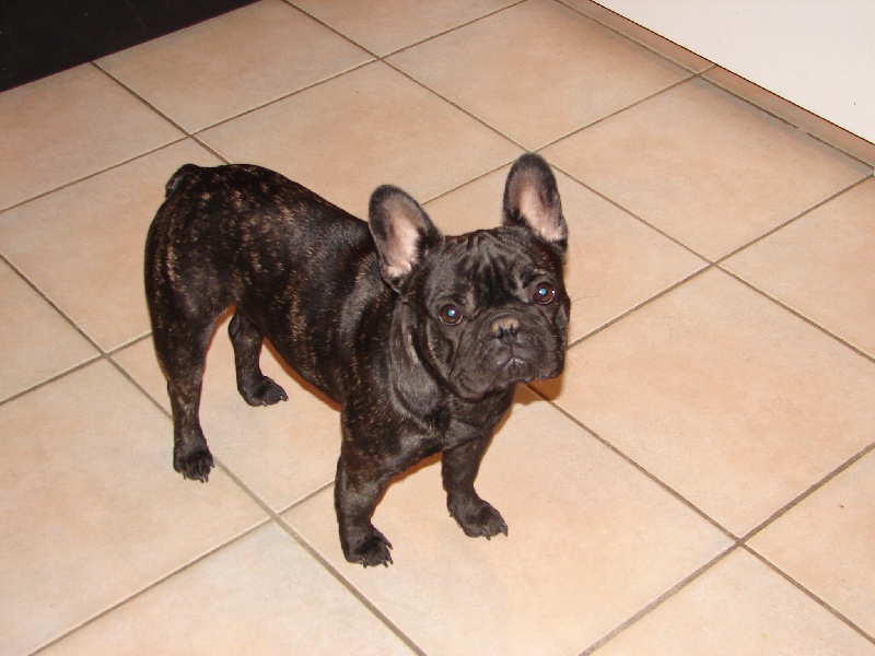 Bringée avec belle robe.Front encore bombé,mais bon prognathisme.Bon port d'oreilles.Allure encore juvénile.Bon port de queue.