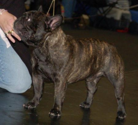 4 e place babyclass males Very promissing Belgian Clubshow 18/02/2007 judge report: Good lay back, dark eye, brick shaped head, nice depth of chest, well boned, very well brindled