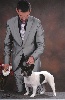 chienne bien compacte av 1 belle robe, forte ossature, piutrail bien ouvert, membres parallèles, arr solide, mâchoires bien recourbées, moyennement larges, exc crâne oreilles stop démarche tonique