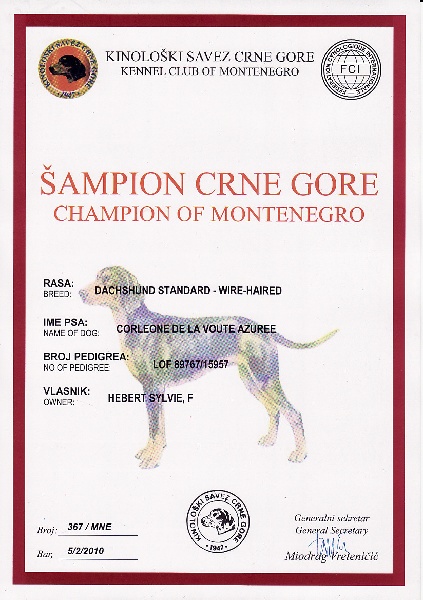 Valide le titre de Champion de beauté du Montenegro.