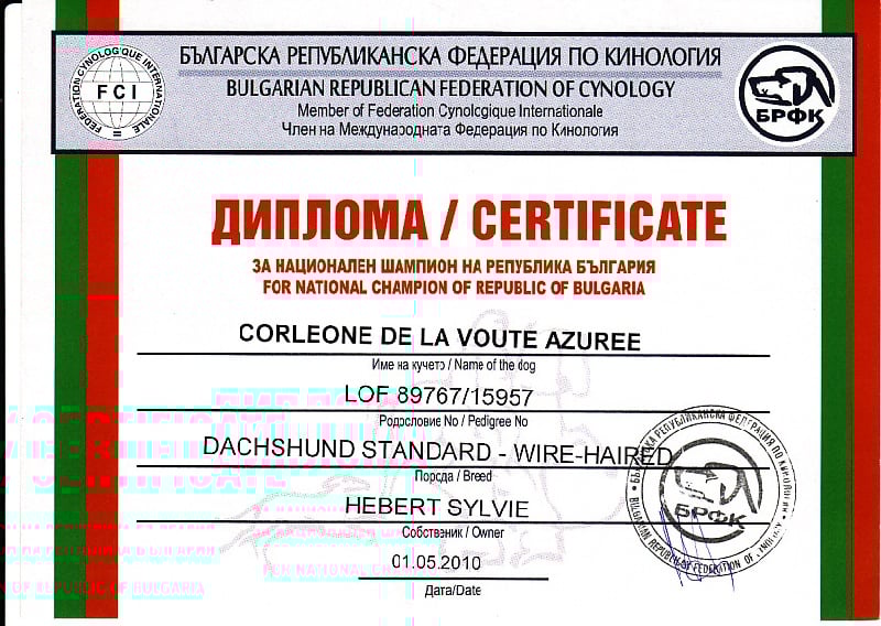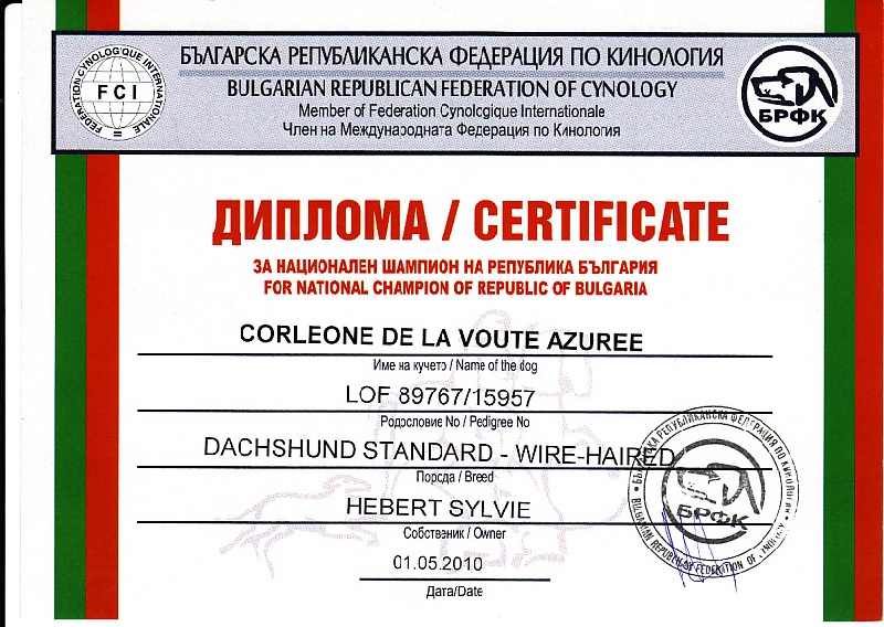 Valide le titre de Champion de beauté de Bulgarie.