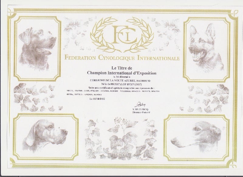 - Homologation du titre de Champion International d'Exposition.