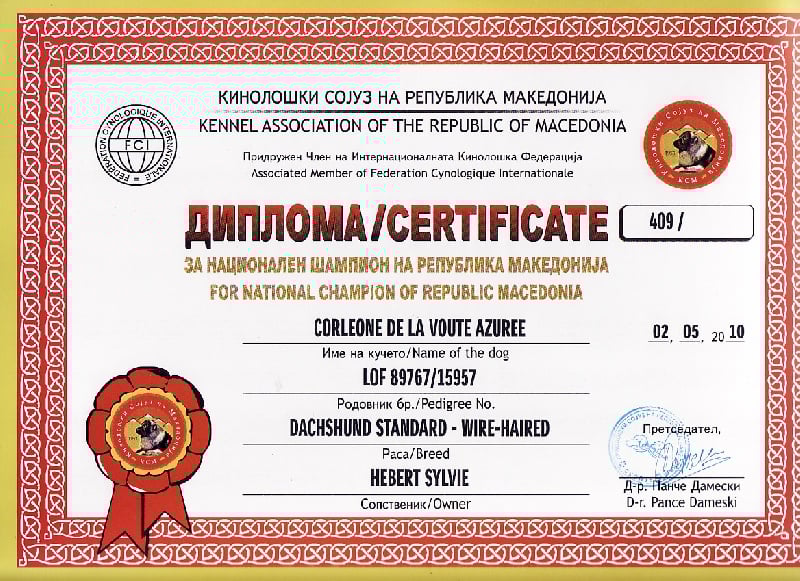Chien Teckel poil dur CH. Corléone de la Voûte Azurée